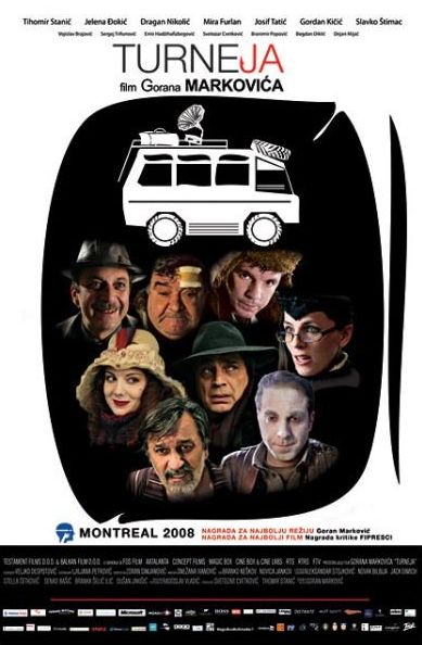 Turneja (2008) je antiratni film poznatog srpskog redatelja Gorana Markovića (Specijalno vaspitanje, Nacionalna klasa, Variola vera, Tito i ja) koji vrlo jasno progovara o ratu u Bosni. Sam čin putovanja glumaca u starom transporteru podsjeća na A ijanov "Tko to tamo pevaâ?? samo što u "Turneji" protagonisti putuju iz Beograda. Pun komičnih i apsurdnih situacija, film kritizira velikosrpsku politiku i ismijava nacionalizam.